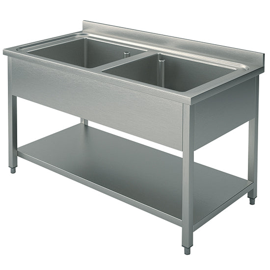 Virtus & Mastro Spültisch, 2 Becken, auf Beinen, mit Zwischenboden, 1000x700 mm