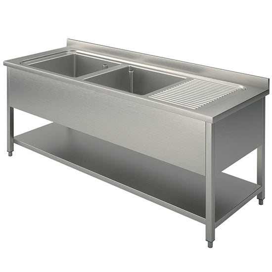 Virtus & Mastro Spültisch, 2 Becken, Tropftasse rechts, auf Beinen, mit Zwischenboden, 2000x600 mm