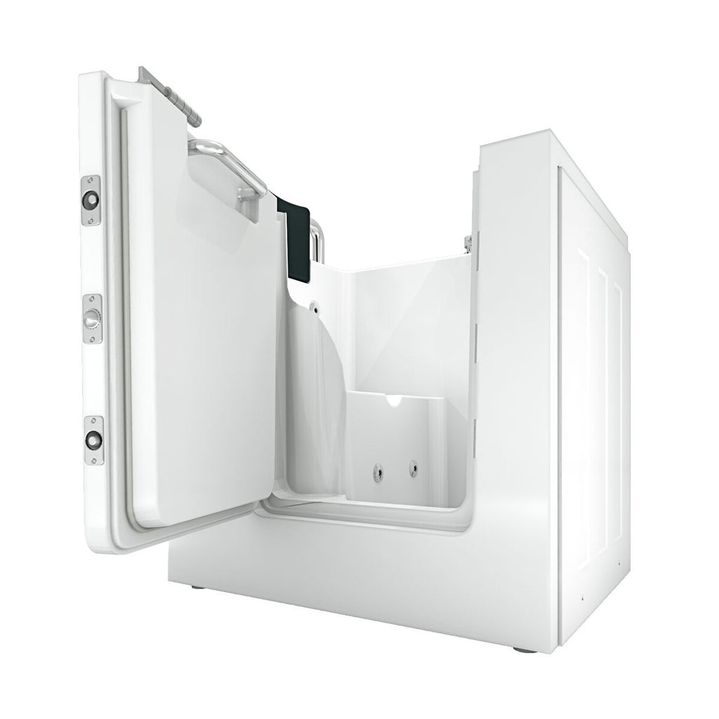 Die breite Türöffnung sowie der geräumige Einstiegsbereich, der integrierten Haltegriff und das anatomische Design des Wannenkörpers gewähren einen sicheren Halt und bieten Personen eine angenehme Bewegungsfreiheit.
