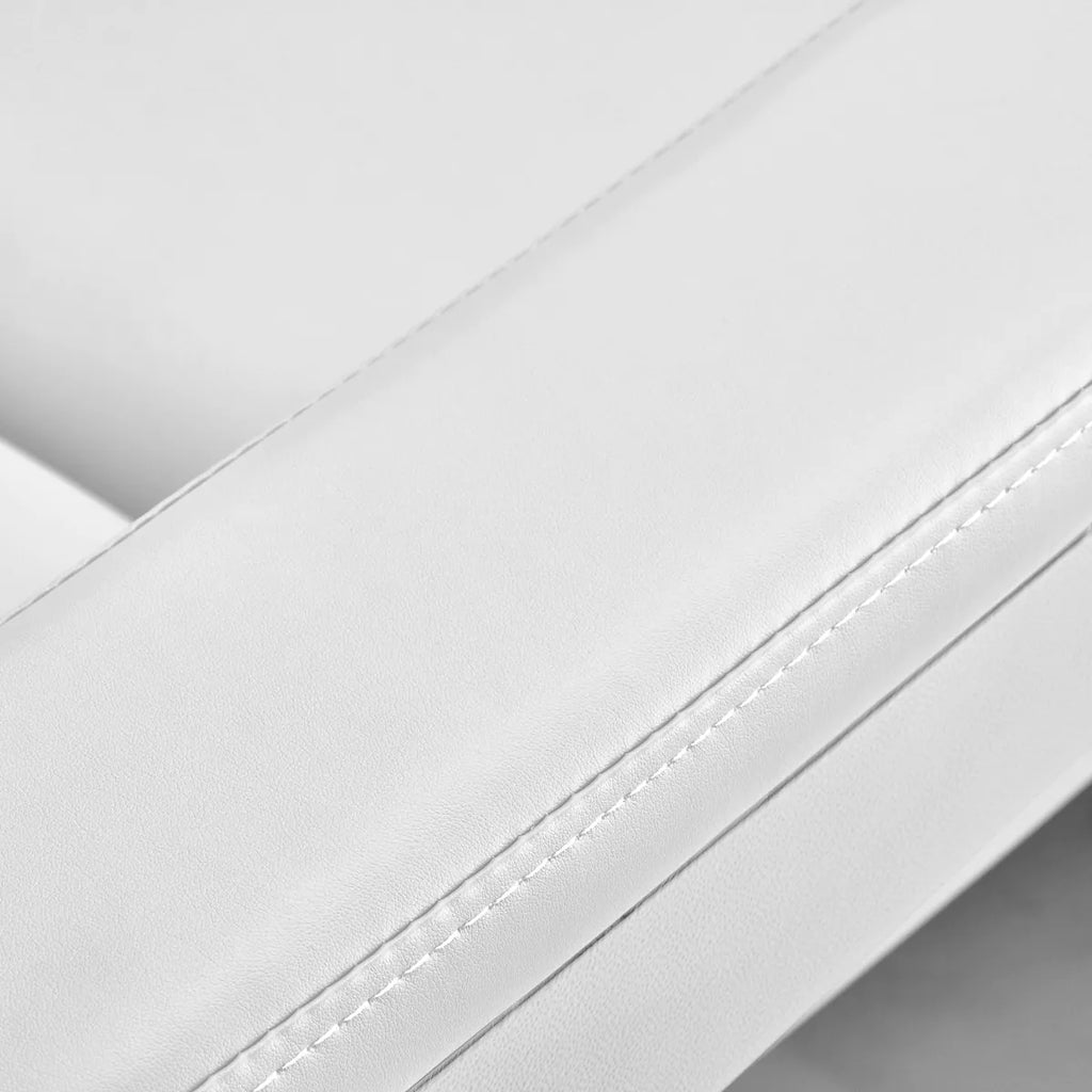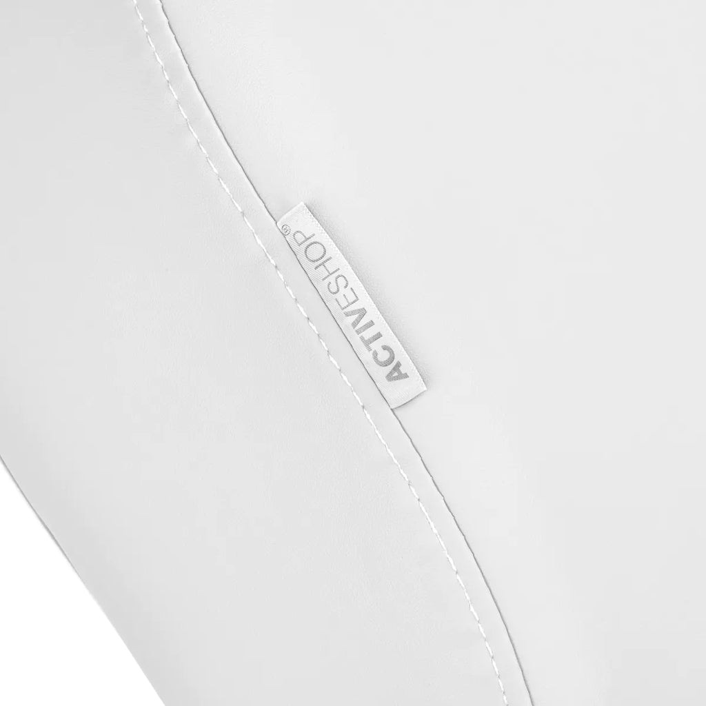 Der Sessel ist mit Schaumstoff entsprechender Härte gefüllt und mit einem angenehmen Lederimitat in Weißtönen bezogen. Dank der Verwendung einesleicht zu reinigenden und gegen ausgewählte Desinfektionsmittelbeständigen Materials sind die Geräte bequem zu bedienen, feuchtigkeitsbeständig und leicht zu reinigen.Die stabile Basisaus strapazierfähigem Material in Weißtönen sorgtfür Stabilität während der Behandlungen. Dekorative Holzelemente an den Armlehnen heben den Sessel von anderen Modellen ab und setzen einen optisch ansprechenden, eleganten Akzent. Die richtig profilierte Polsterung verleiht dem Stuhl ein stilvolles Aussehen undmacht den Sitz ergonomisch.