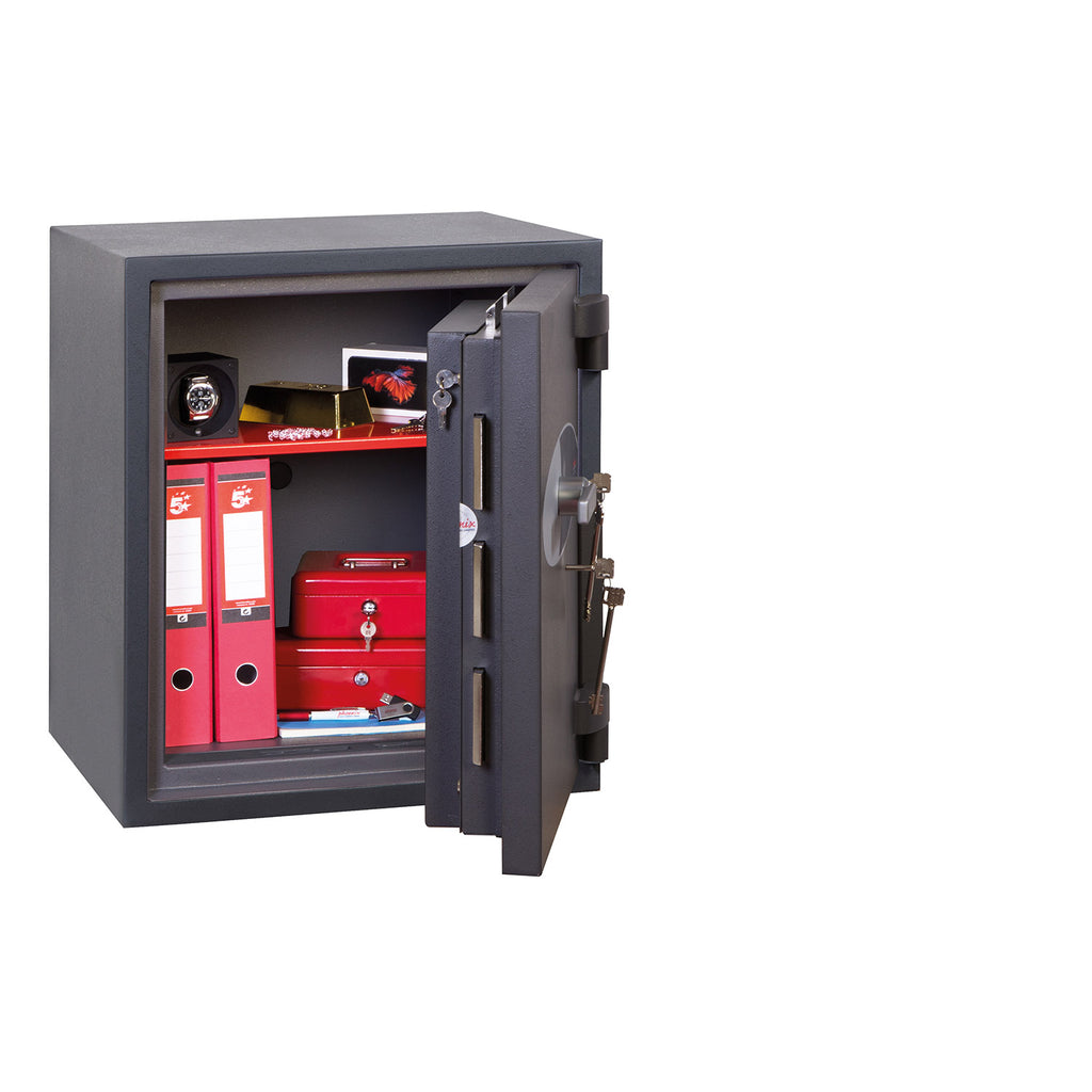 BRANDSCHUTZ – Getestet nach der europäischen Brandschutznorm LFS 30P (EN15659), die 30 Minuten Brandschutz für Papierunterlagen bietet.