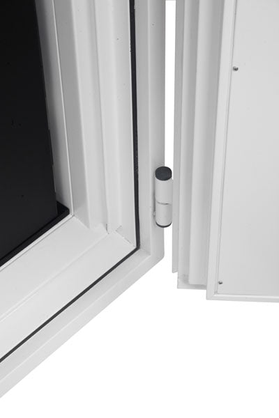 Doppelwandiger Stahlkörper und Tür, gefüllt mit feuerbeständigem Barrierematerial und einer Innentür.