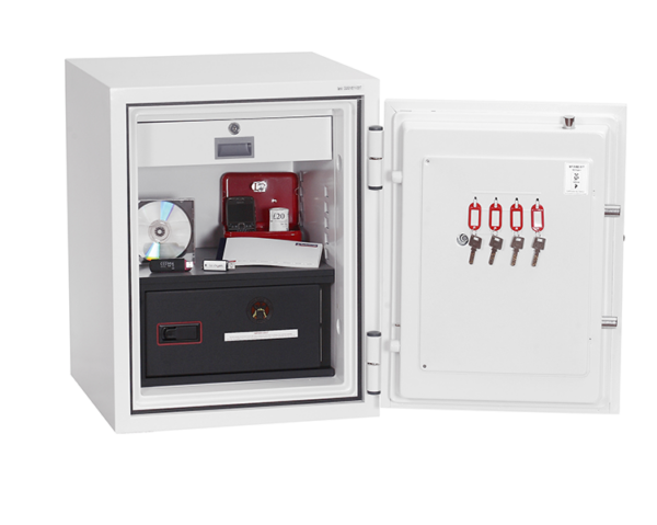 BRANDSCHUTZ (DIGITALE MEDIEN) – Getestet nach der Brandtestnorm MTC – DIP120 – 60DM, bietet 60 Minuten Brandschutz für digitale Medien, DVDs, USB-Speichersticks und Festplatten.