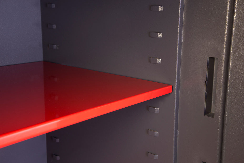 KONSTRUKTION – 3-Wege-Winkelverriegelungsbolzen, Doppelwandkonstruktion mit speziell formulierter Betonfüllung, Anti-Bohrplatten und Wiederverriegelungsschutz sorgen für einen Tresor mit großer Stabilität.