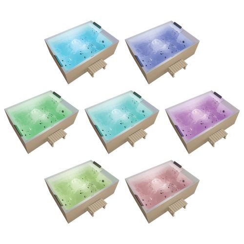 Eine LED-Beleuchtung sorgt für stimmungsvolle Atmosphäre, während zwei weiche Kopfpolster zusätzlichen Komfort bieten. Der stabile Edelstahlrahmen garantiert Langlebigkeit und Stabilität. Die mitgelieferte Abdeckung schützt das Wasser vor Schmutz und Wärmeverlust, und die Stiege ermöglicht einen bequemen Einstieg.