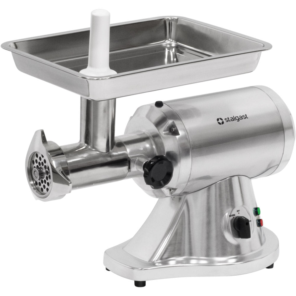 Dieser Fleischwolf von Stalgast ist ein Kraftpaket und für die Herstellung von Hackfleisch oder sogar die Verarbeitung von Fisch besonders geeignet. Das kompakte, robuste Gehäuse wurde aus langlebigem Edelstahl und Aluminium gefertigt.Mit Hilfe des scharfen Messers und den zwei im Lieferumfang enthaltenen Lochscheiben verarbeiten Sie bis zu 300 kg Fleisch in der Stunde. Dabei ist das standsichere Gerät einfach zu bedienen und zu reinigen. Sollten Sie versehentlich zu schnell Produkt nachfüllen, hilft der praktische Rückwärtsgang Verstopfungen zu beheben.Sie erhalten mit dem Gerät Lochscheiben mit einer Bohrung von 6 bzw. 8 mm, ideal für Kochwurst, grobe Bratwurst oder Dauerware. Für feineres oder gröberes Haschieren können Sie bei uns zusätzliche Lochscheiben mit Bohrungen von 2 bis 10 mm bestellen.