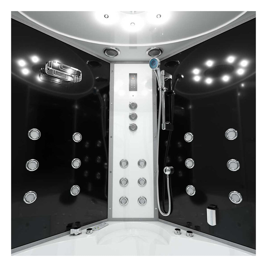 - 18x Rückenmassagedüsen in den Glasrückwänden und im Duschpaneel