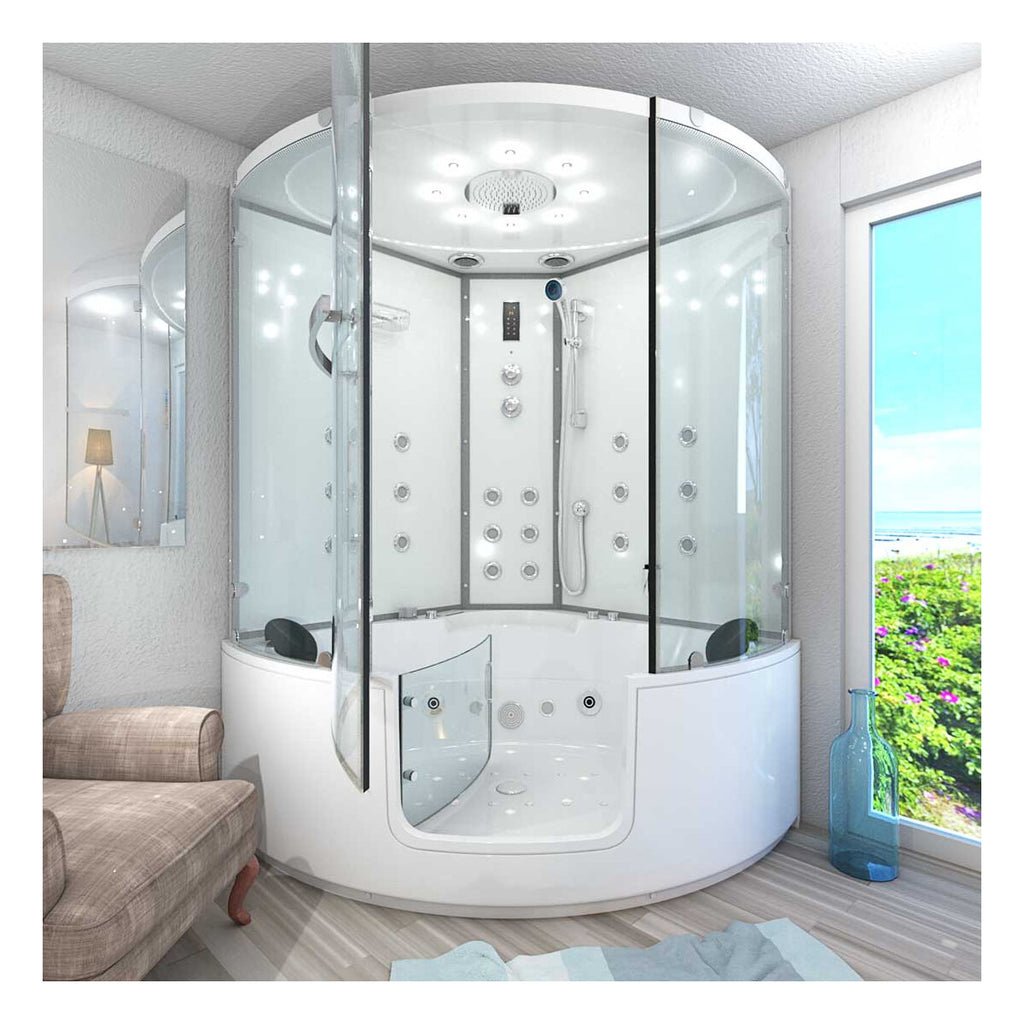 Besonders praktisch ist, dass Sie die Duschwanne ähnlich einfach wie einen Schrank aufbauen und dann einfach in die Ecke schieben. Sollten Sie einmal umziehen, dann können Sie diese 3 in 1 Whirlpool/Wanne/Dusche einfach wie einen Schrank demontieren und mitnehmen. Dieses Modell ist zusätzlich noch mit einer Tür ausgestattet. Die Tür schließt nach innen und hat eine breite Silikondichtung. Dieser Aufbau gewährleistet, das die Tür auch wirklich 100 % dicht ist.