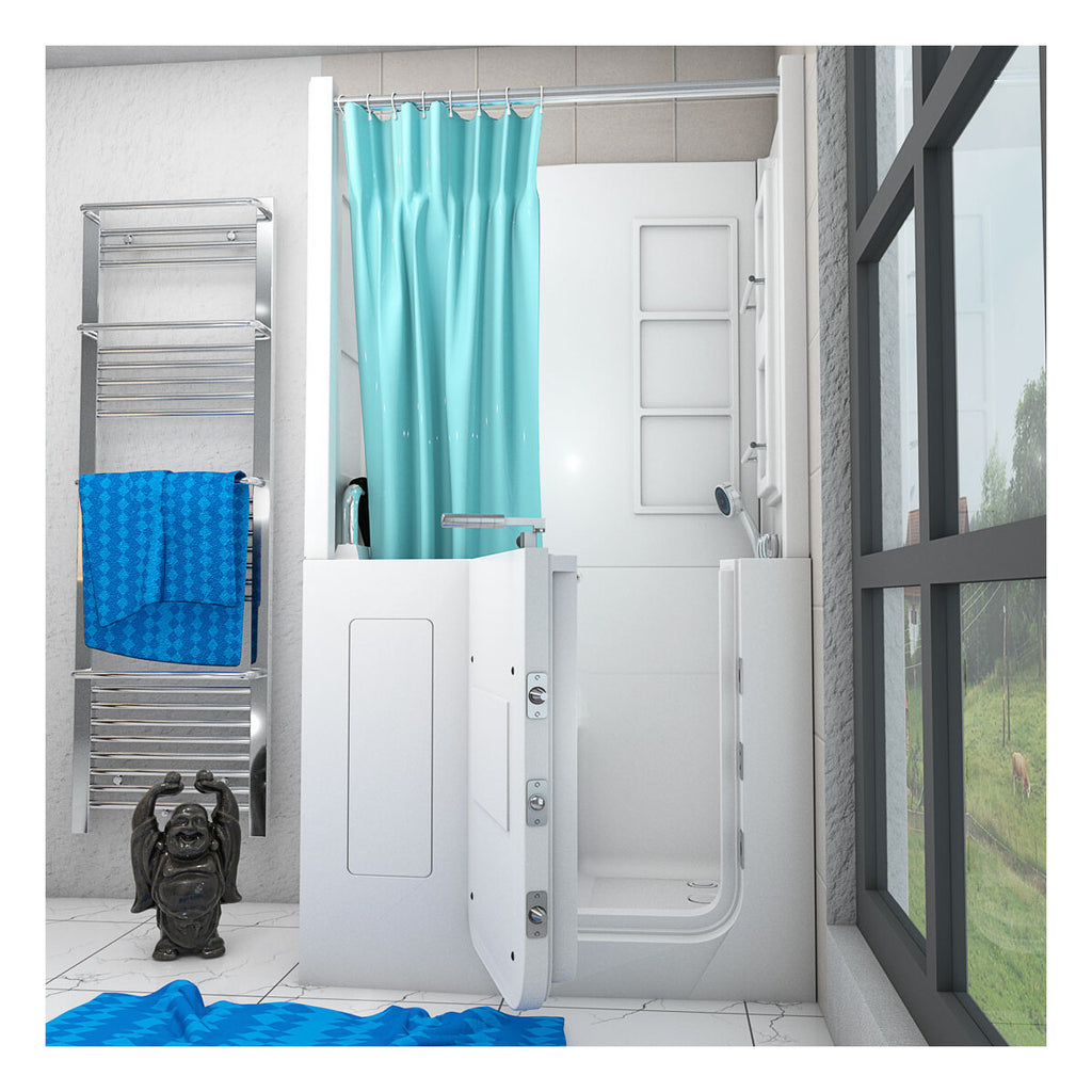 Die breite Türöffnung sowie der geräumige Einstiegsbereich, der integrierten Haltegriff und das anatomische Design des Wannenkörpers gewähren einen sicheren Halt und bieten Personen eine angenehme Bewegungsfreiheit.