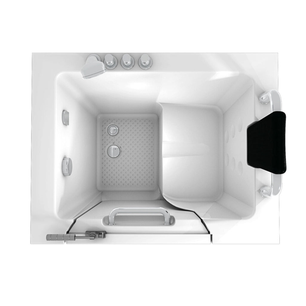 Die breite Türöffnung sowie der geräumige Einstiegsbereich, der integrierten Haltegriff und das anatomische Design des Wannenkörpers gewähren einen sicheren Halt und bieten Personen eine angenehme Bewegungsfreiheit.