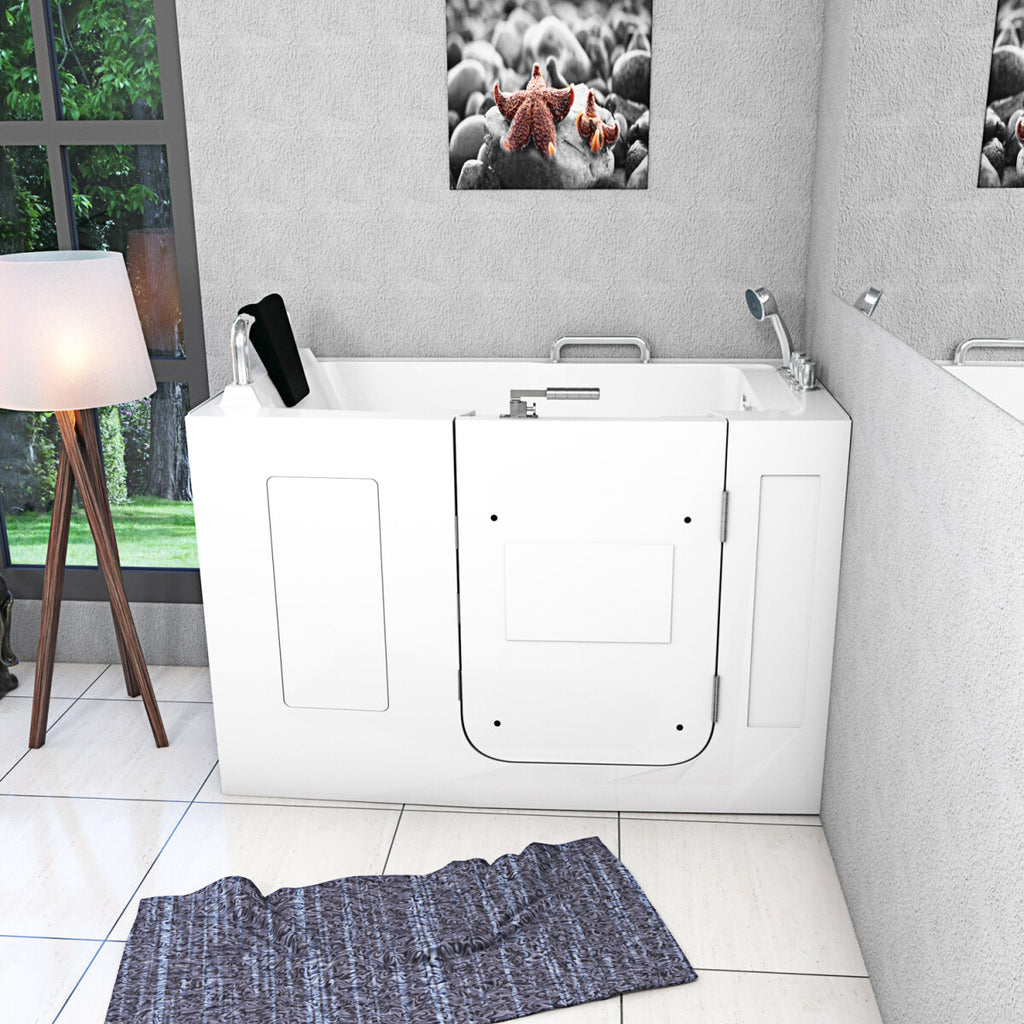 Die breite Türöffnung sowie der geräumige Einstiegsbereich, der integrierten Haltegriff und das anatomische Design des Wannenkörpers gewähren einen sicheren Halt und bieten Personen eine angenehme Bewegungsfreiheit.