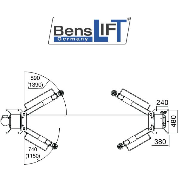 - Teleskopierbare Tragarme in flacher Ausführung für Sportwagen