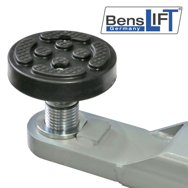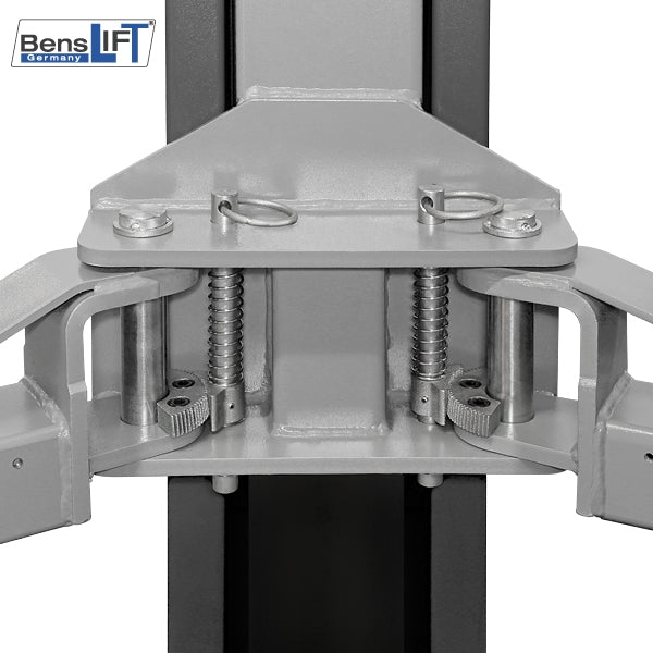 Eine Top Ausstattung zeichnet sich aus durch automatische Entriegelung der Sicherheitsriegel, hochwertiger Pulverbeschichtung, höhenverstellbaren zweistufigen Drehtellern mit Doppelgewinde und Verdrehschutz, extrem flachem Überfahrblech (nur 30 mm).