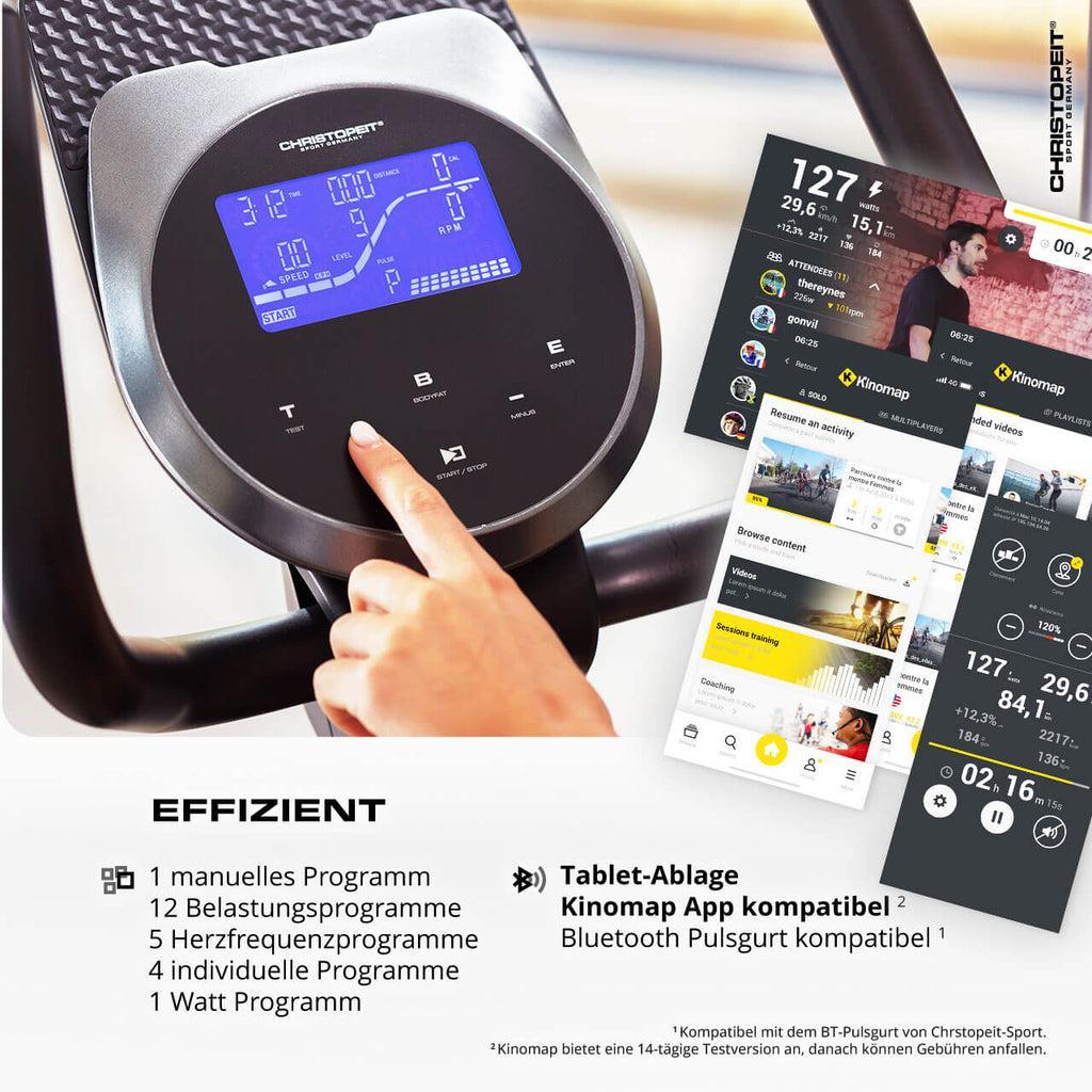 - Kompatibel Kinomap App und Bluetooth Pulsgurt
