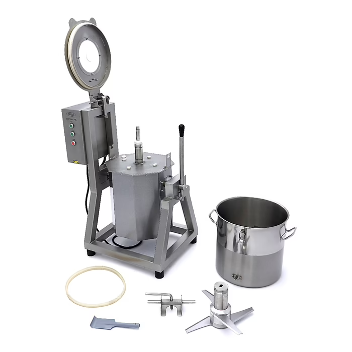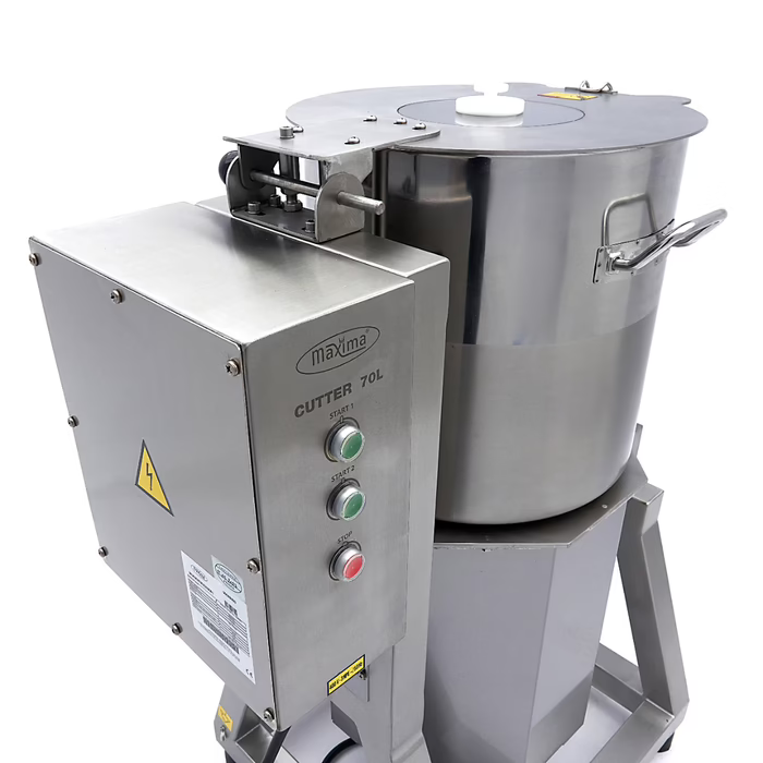 Diese professionelle und effiziente Küchenmaschine mit einer 70-Liter-Edelstahlschüssel eignet sich ideal für den Einsatz in der Gastronomieküche zum Hacken und Schneiden von Zutaten wie Fleisch, Fisch, Gemüse, Obst, Nüssen oder Schokolade. Der Kutter ist hochwertig verarbeitet und hat eine variable Geschwindigkeit zwischen 1500 und 3000 U/min.