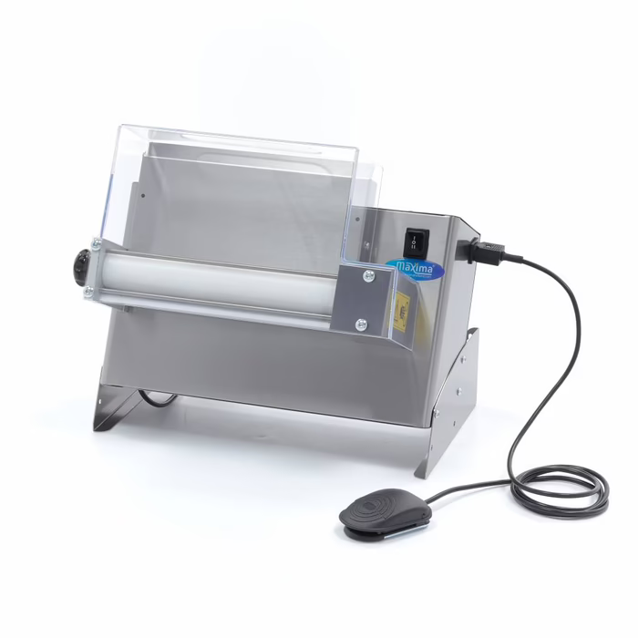 Dieser einfache Fondantroller eignet sich zum Ausrollen von Fondant mit einem Durchmesser zwischen 14 und 30 cm. Er ist ideal für den Einsatz in der Gastronomieküche zum Überziehen von Torten und Cupcakes. Mit dem mitgelieferten Fußpedal haben Sie die Hände frei, um den Fondant durch das Nudelholz zu führen.