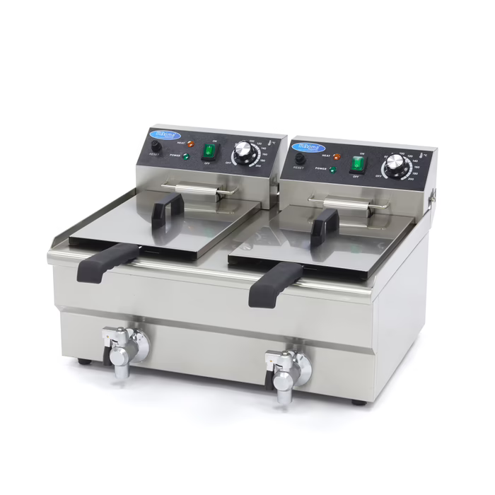 Doppelte elektrische Fritteuse, inklusive Ablasshahn für einfachen Ölwechsel