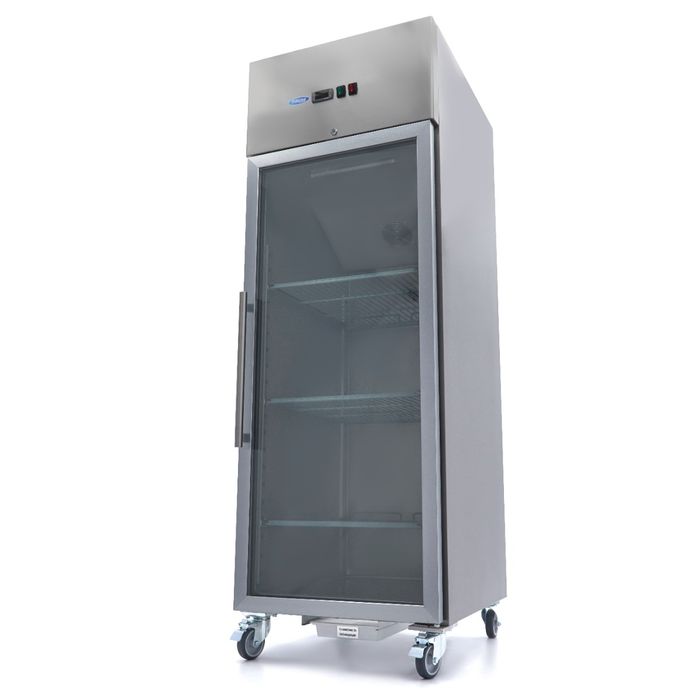 MAXIMA Gastro Gefrierschrank - 600 l - 3 Einstellbare Regale (2/1 GN) - Rostfreier Stahl - mit Glastür