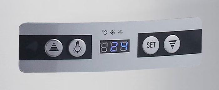 Um sicherzustellen, dass alle Produkte in der runden Kühlvitrine gleichmäßig gekühlt werden, verfügt sie über ein eingebautes Kühlsystem mit Ventilator. Außerdem können Sie dank des digitalen Temperaturreglers ganz einfach die Temperatur für die Kühlung Ihrer Produkte auswählen. Mit den Tasten auf dem Display auf der Rückseite können Sie die Temperatur selbst zwischen 0° und 12°C einstellen. Dank des einzigartigen eingebauten Kühlzyklus wird auch die Eisbildung reduziert. Der Display-Kühlschrank ist mit einer automatischen Abtaufunktion ausgestattet, d. h. alle sechs Stunden wird das entstehende Eis in kalte Luft umgewandelt. Das Kältemittel, das für diese Luxus-Konditorei verwendet wird, ist R600a und ist frei von FCKW.