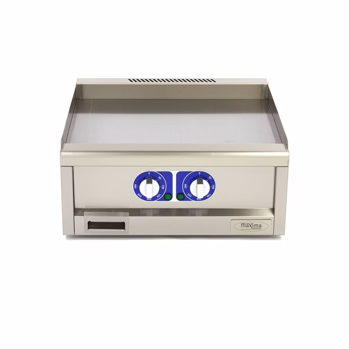 Bei der Arbeit mit hohen Temperaturen ist die Sicherheit in der Küche sehr wichtig. Deshalb ist dieser Elektrogrill mit einem Spritzschutz aus Edelstahl an der Rückseite und den Seiten ausgestattet. Dadurch wird die Verletzungsgefahr durch Fettspritzer verringert. Das Gerät ist außerdem mit einem Überlastungsschutz ausgestattet. Die Temperatur lässt sich leicht mit dem Temperaturregler einstellen, mit dem Sie Temperaturen zwischen 50ºC und 300ºC wählen können. Dieser professionelle Grill ist leicht zu bedienen. Schalten Sie das Gerät einfach mit der Einschalttaste ein, fetten Sie die Grillfläche ein und warten Sie, bis die richtige Temperatur erreicht ist, bevor Sie Ihre Produkte auf die Platte legen