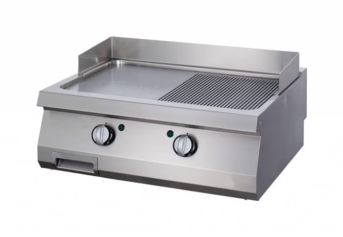 Diese robuste Grillplatte hält auch starker Beanspruchung stand und verfügt über eine glatte und gerillte, doppelt verchromte 15-mm-Edelstahlplatte mit einer satinierten Oberfläche. Die Grillplatte ist in der wasserdichten Aussparung eingelassen, und dank der nahtlos verschweißten Oberseite bleiben nach der Reinigung keine Rückstände zurück. Außerdem verfügt er über eine 1,5-Liter-Auffangschale und einen Spritzschutz, um Ölspritzer zu vermeiden. Die Temperatur lässt sich mit dem Sicherheitsthermostat zwischen 50 und 300ºC einstellen. Die Griddle passt auch perfekt in eine Kochzeile.