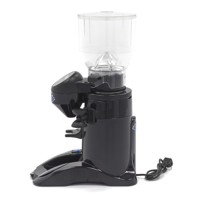 Diese professionelle Kaffeemühle ist voll einstellbar. Sie können sowohl den Mahlgrad als auch die Dosierung der gemahlenen Bohnen und die Mahldauer einstellen. Außerdem verfügt sie über einen praktischen Kolbenhalter und einen Motor mit Wärmeschutz. Für zusätzliche Stabilität steht die Kaffeemühle auf vier Gummifüßen, damit sie beim Mahlen der Bohnen nicht verrutscht.