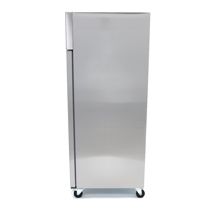 Dieser professionelle Edelstahlkühlschrank hat ein Bruttofassungsvermögen von 600 l. Er verfügt über eine selbstschließende Tür, eine LED-Beleuchtung und drei höhenverstellbare Einlegeböden, mit denen Sie Ihre Einrichtung ganz einfach an Ihre Bedürfnisse anpassen können. Dank seiner vier Räder können Sie ihn auch an den besten Platz in der Küche bewegen.