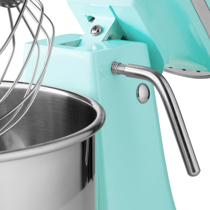 Dieser professionelle Planetenmischer ist sehr einfach und bequem zu bedienen. Mit einem Hebel lässt sich der Mixer öffnen, so dass die Rührschüssel leicht entfernt oder das Zubehör gewechselt werden kann. Der Kopf des Geräts ist mit einem Sicherheitsschalter ausgestattet, so dass die Maschine automatisch stoppt, wenn der Kopf angehoben wird. Mit den separaten Start- und Stopptasten kann das Gerät ein- und ausgeschaltet werden. Um zu verhindern, dass die beweglichen Teile während des Betriebs berührt werden, ist das Produkt mit einer Schutzabdeckung aus Kunststoff versehen. Über die Öffnung oberhalb der Schüssel können Sie auch während des Knetens oder Mischens Zutaten einfüllen. Alle Einzelteile aus Edelstahl sind spülmaschinengeeignet.