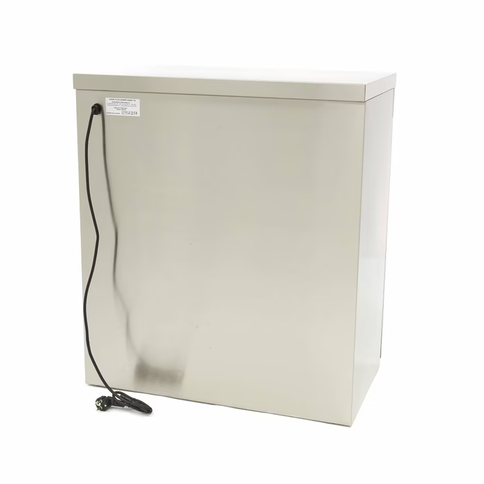 Das Innere dieses Tellerwärmers kann durch einfaches Drehen des Temperaturknopfes in einem Bereich von 30 bis 85⁰C erwärmt werden. Eine Kontrollleuchte zeigt an, wann die genaue Temperatur erreicht ist und die Teller verwendet werden können. Die Einlegeböden im Inneren des Tellerwärmers sind höhenverstellbar, so dass Sie ihn ganz nach Ihren Bedürfnissen einrichten können. Außerdem verfügt er über zwei Türen an der Vorderseite, die sich leicht öffnen und schließen lassen.