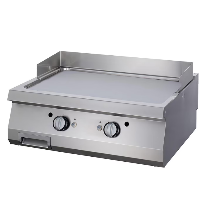 Diese hochwertige Griddle wurde speziell für den Einsatz in einer Kochlinie entwickelt und ist durch die Verwendung hochwertiger Materialien ideal für den täglichen, intensiven Gebrauch. Die glatte Grillplatte ist aus 15 mm starkem Stahl gefertigt und hat eine elegante Chromoberfläche. Darunter befindet sich eine große 1,5-Liter-Auffangschale, die das Fett während des Kochvorgangs auffängt und für Ordnung sorgt. Sie kann zur Reinigung einfach herausgenommen werden.