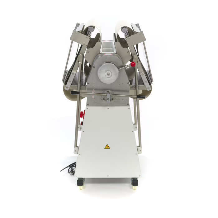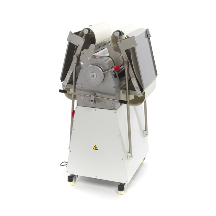 Diese professionelle Teigausrollmaschine hat eine 38 cm lange Walze, mit der sich jede Art von Teig schön und gleichmäßig ausrollen lässt. Wenn Sie in einer Bäckerei, einem Restaurant, einer Pizzeria oder einem Hotel viel mit Teig arbeiten, ist eine Teigausrollmaschine ein Muss. Wenn Sie nur wenig Platz in Ihrer Küche haben, ist dieses Standmodell praktisch, weil es sich zusammenklappen lässt. Das Förderband ist speziell für die Verarbeitung von Lebensmitteln konzipiert und eignet sich für die Verarbeitung großer Teigmengen