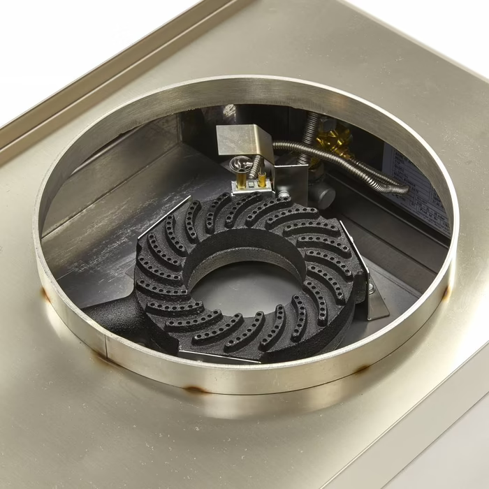 Dieser professionelle Wokkocher funktioniert mit Gas und hat eine sehr robuste Konstruktion. Er ist für den täglichen, intensiven Gebrauch geeignet und wird jahrelang halten. Das Gerät ist mit einem Brenner aus Gusseisen ausgestattet.