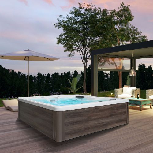 Ausgestattet mit einer zweistufigen Hydropumpe und 18 Massagedüsen, bietet der PALERMO ein ausgewogenes Massageerlebnis für Nacken, Rücken und Beine. Das digitale Bedienelement mit fortschrittlicher elektronischer Steuerung ermöglicht eine einfache Bedienung, während die UV-Desinfektion, das Kartuschenfiltersystem und der Skimmer für sauberes, klares Wasser sorgen – eine ergänzende Chlorzugabe ist erforderlich, um dauerhaft hygienisch reine Wasserqualität zu gewährleisten.