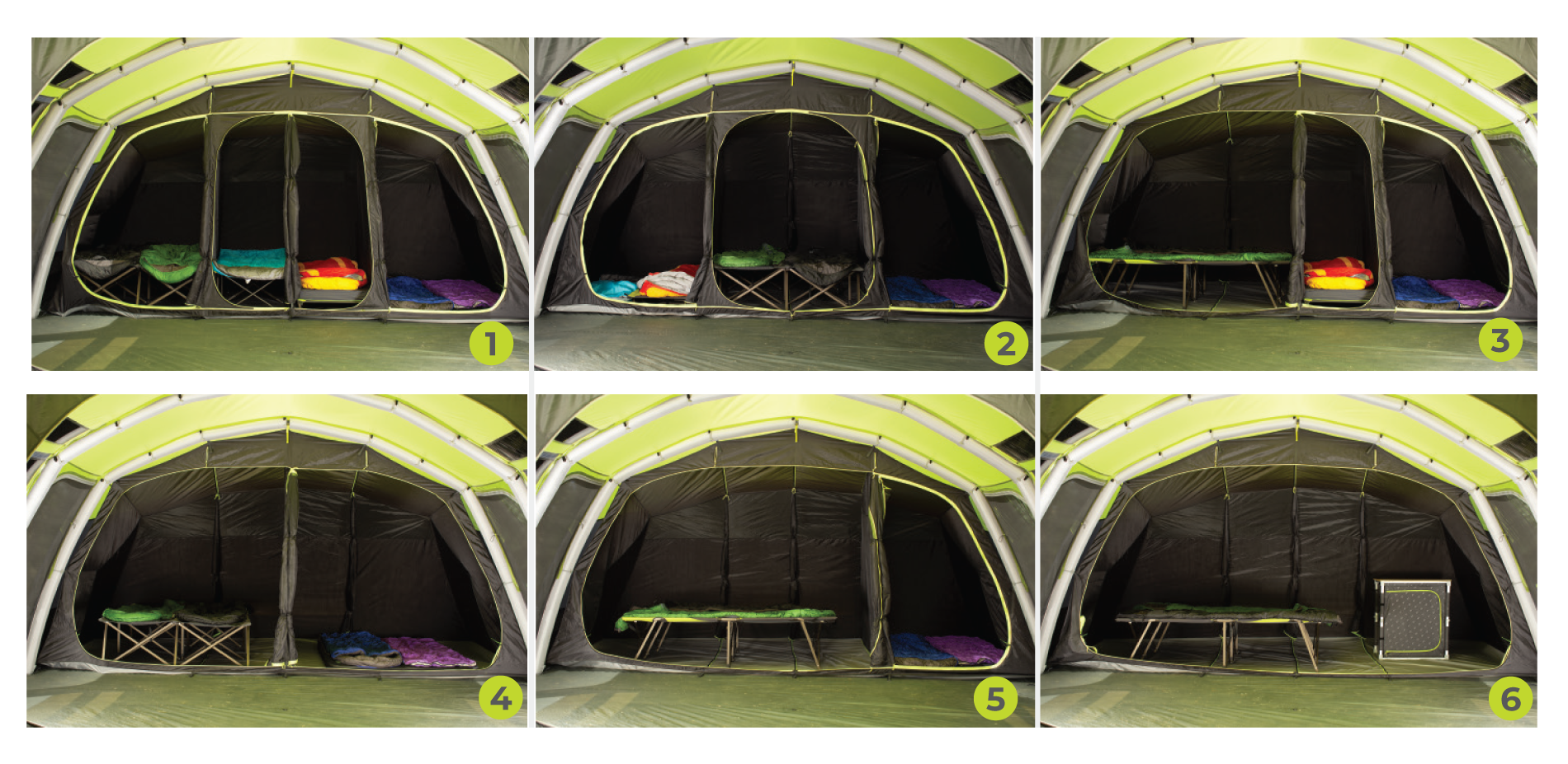 - Aufblasbares VorzeltEine stabile Struktur, die sich gleichzeitig mit dem Zelt entfaltet und den Aufbau und das Einpacken schneller und einfacher als je zuvor macht.